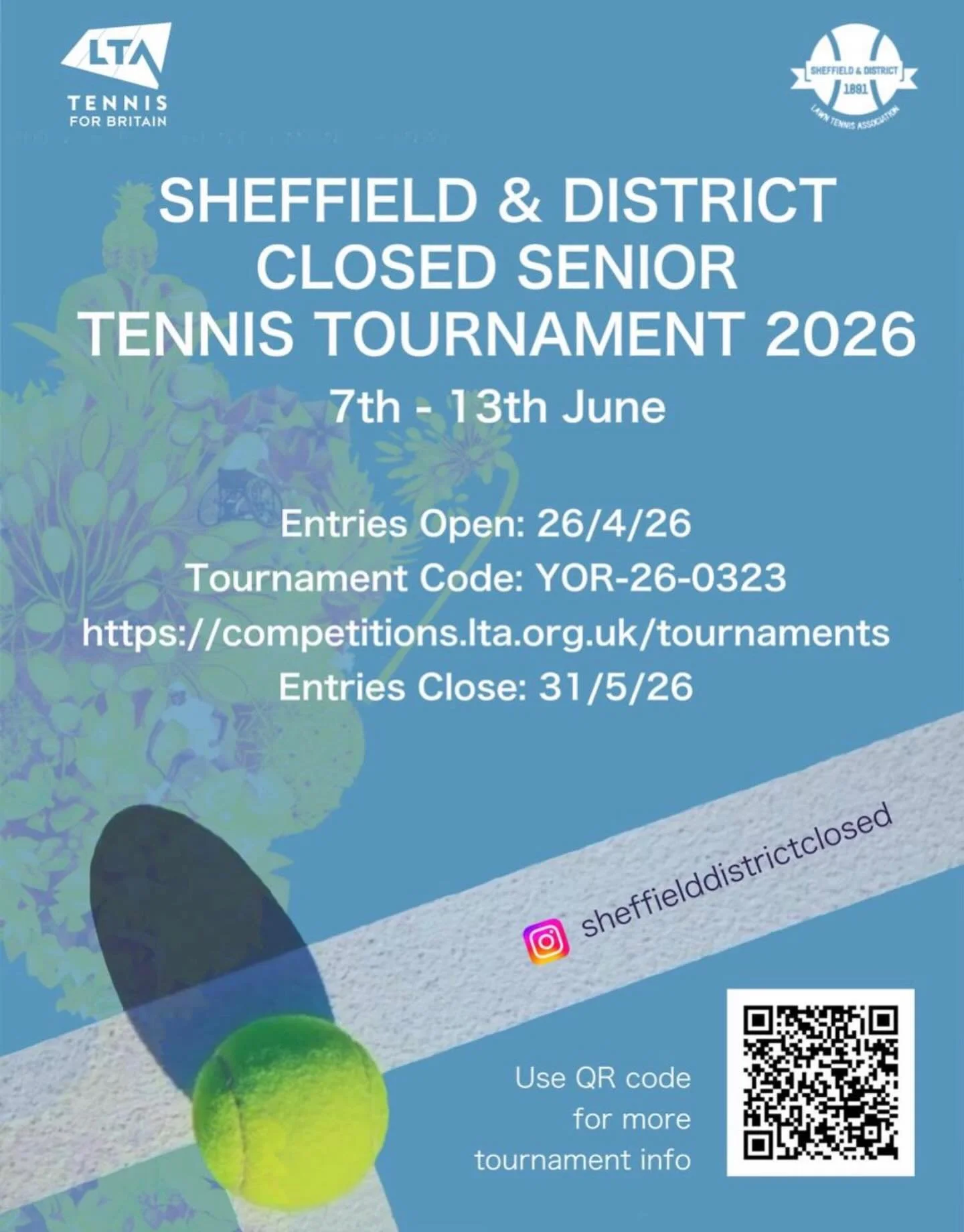 Sheffield & District Senior Closed Tournament will be accepting entries